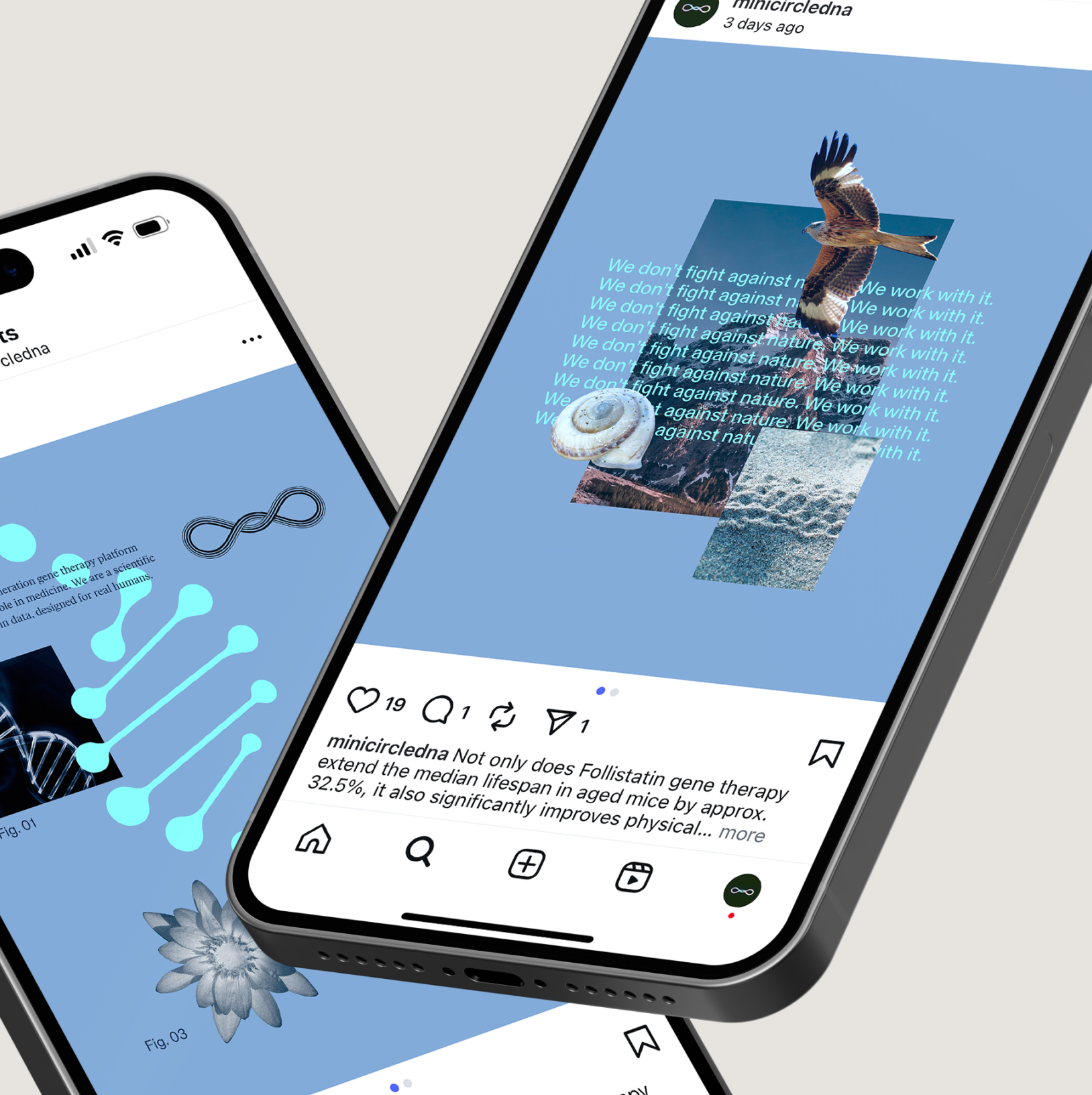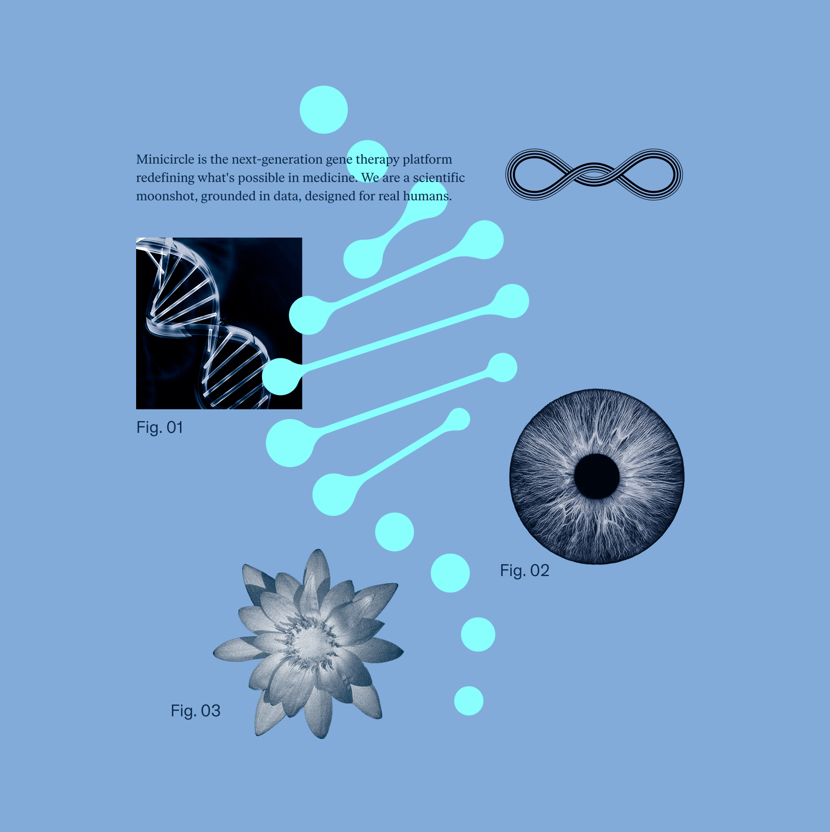 Minicircle offers gene therapy for a discerning audience. I expanded their brand identity into a full visual storytelling system using collage, typography, and motion to make complex ideas feel compelling and human through web design, social content and merch.